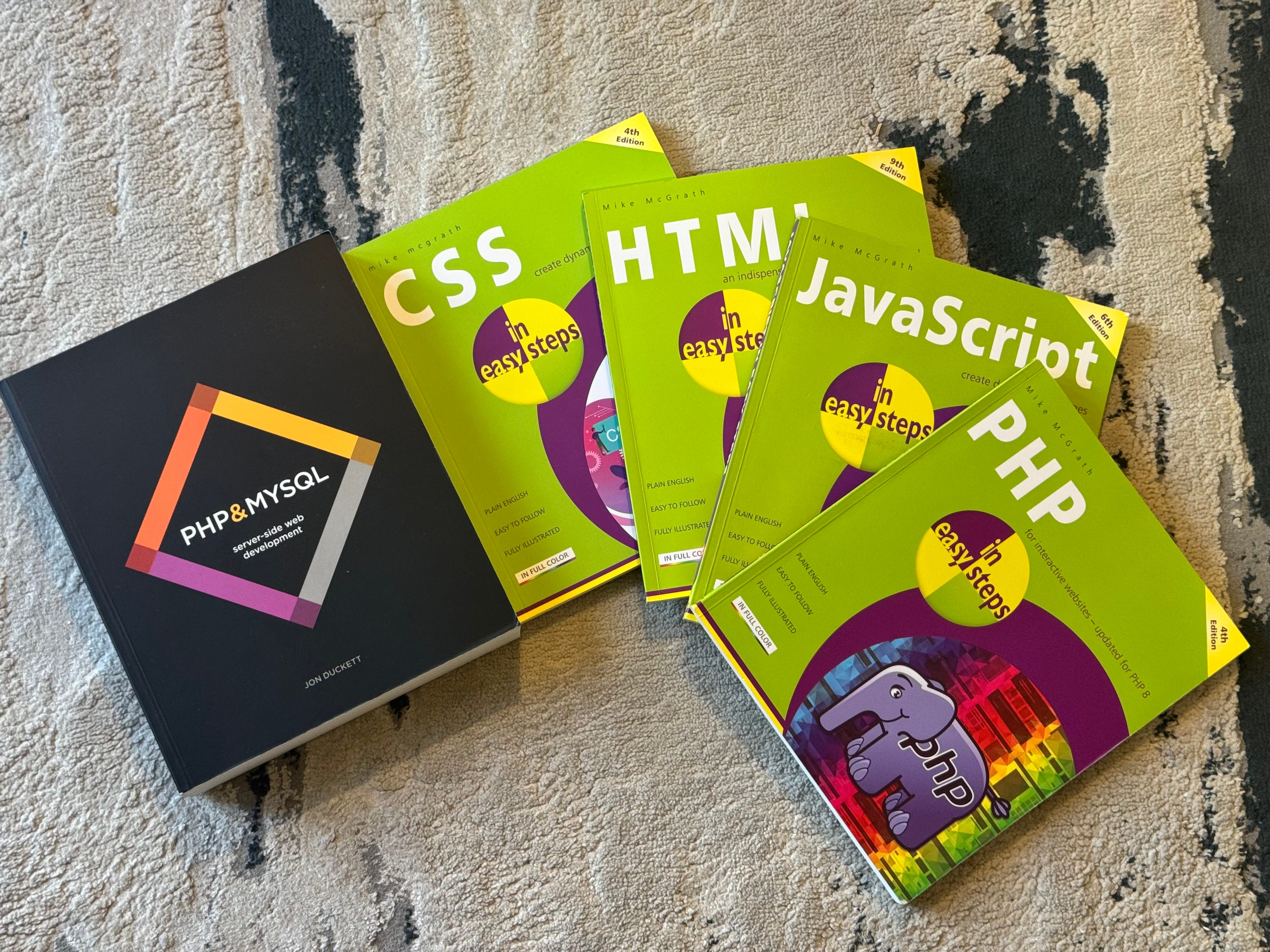 Given my area of expertise is mainly iOS/mobile, in mid 2024 I decided to get better with building for web in order to become a well rounded full stack engineer. I ordered and started reading the books pictured below, outside my normal 9-6 schedule: